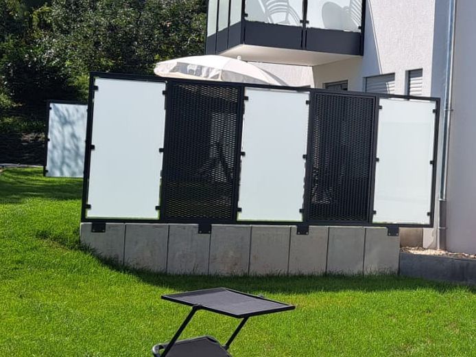 Ob auf Balkonen, in Gärten oder als stilvoller Windfang oder auch zur Abgrenzung zum Nachbarn – unsere Stahl- oder Edelstahlgrundgestelle bieten Ihnen vielfältige Füllungsoptionen wie Glas, Streckmetall, Alukassetten, Trespaplatten, Holz oder individuelle Kombinationen.